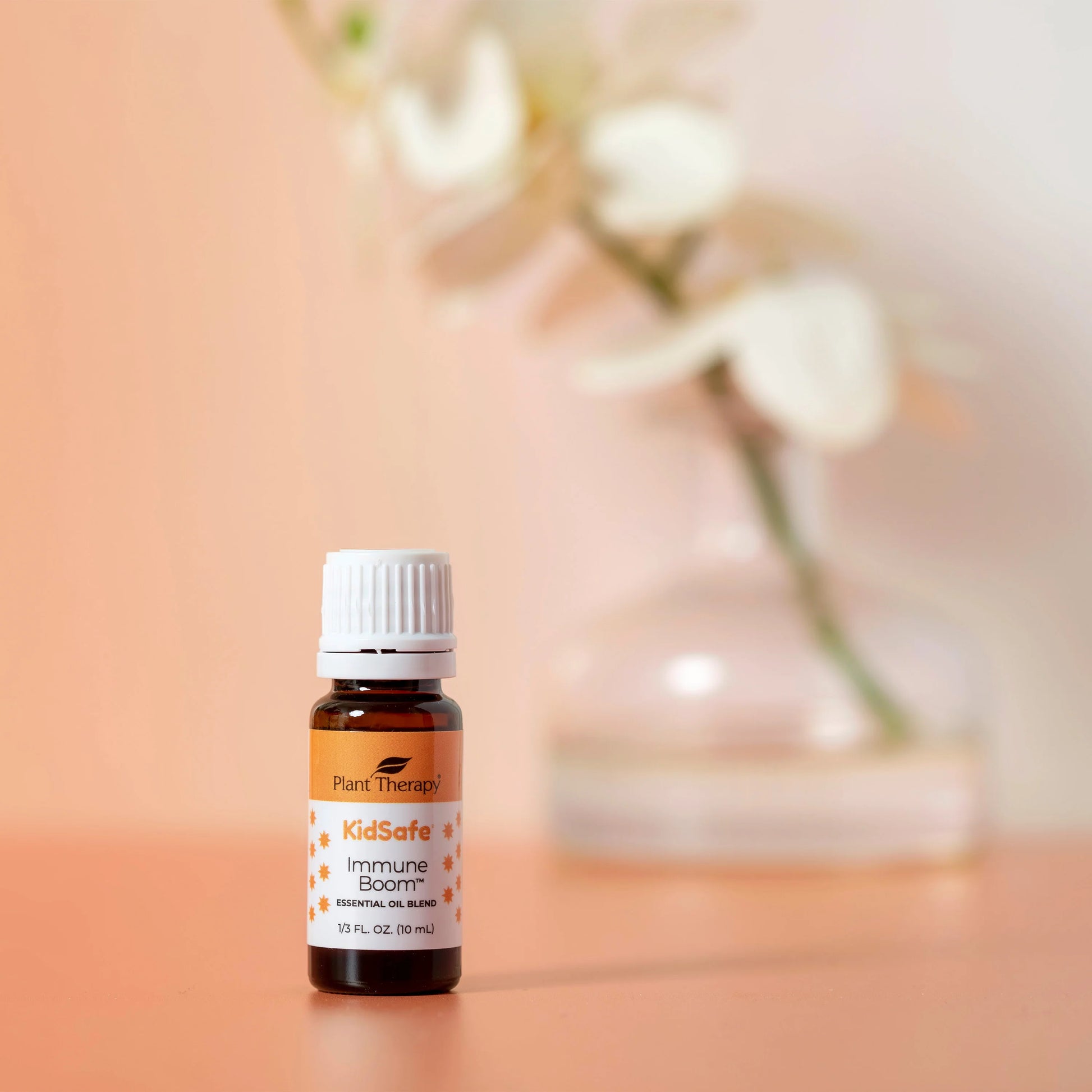 Immune Boom Essential Oil Blend was made to help support a healthy immune system. Reach for Immune Boom when the common cold strikes to help keep your child healthy and encourage clear airways. Made with Lemon, Palmarosa, Dill Weed, Petitgrain, Copaiba Oleoresin and Frankincense Carterii, this blend is safe for children 2-10, but great for adults, too!
